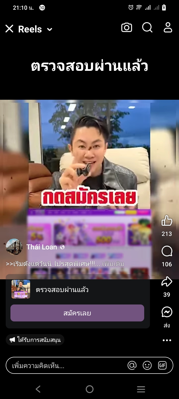 กด “เพิ่ม”ทางลัดเข้าสู่เกมส์